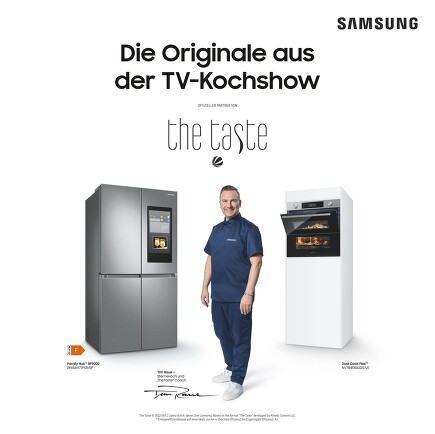 Die zehnte Staffel des Sat.1-Erfolgsformats "The Taste" begeistert wieder mit einem Mix aus fesselnden Koch-Duellen und kulinarischen Neuerfindungen. Seit 2020 ist Samsung unverzichtbarer Mitstreiter des zuletzt von 1,20 Millionen Zuschauerinnen und Zuschauern verfolgten Wettkochens. Zu den smarten Geräten, an denen "duelliert" wird, zählen die Dual Cook Flex™ Backöfen und der Family Hub™, das Kühlschrank-Modell aus der neuen Samsung Serie RF9000.